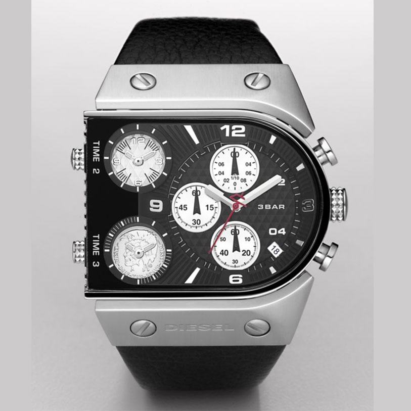 This Ultra-oversized 55 millimeter "Super Bad Ass" watch is built for performance and definitely not for the faint of heart. Three displays (including a chronograph and two analog clocks to navigate multiple time zones without losing a second. Finely etched case is integrated into a genuine black leather strap. Summed up, there are big watches, there are oversize watches, but these are the first truly Bad Ass watches!
