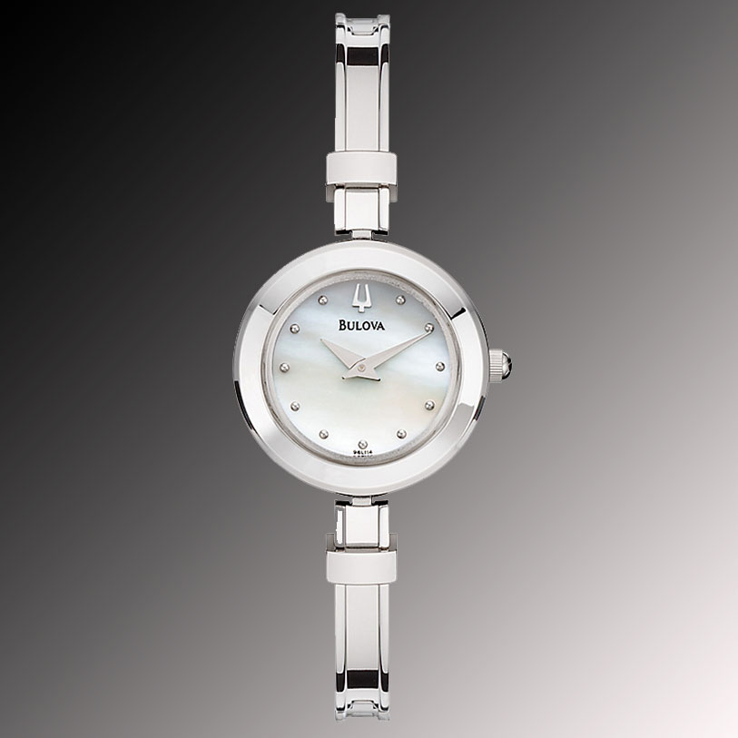 Elegance fit for every day. In silvertone mixed metal, this fine Bulova watch features a bangle bracelet and round case.