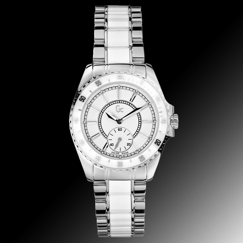 This style embraces the essence of sport elegance and expressive chic. High-polished white ceramic graces the bezel and center links of the polished steel case and bracelet. Feminine details meet high-tech design in the layered dial that features a precision Swiss mini-sweep movement.